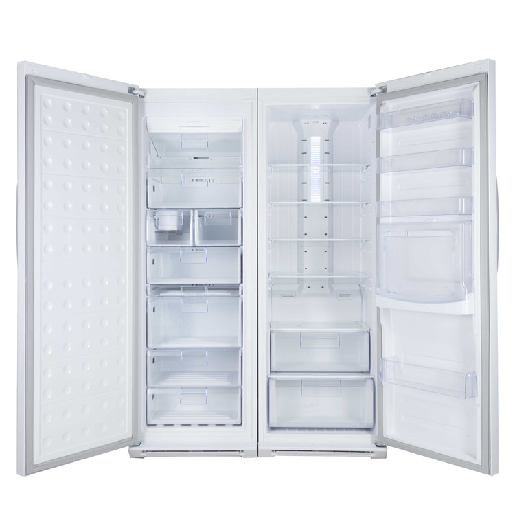 یخچال فریزر دوقلو هیمالیا مدل رومانو پلاس ( Romano + ) ، گزینه مناسب بسیاری از افراد برای پیدا کردن یخچالهای جادار است. این محصول با حجم مفید زیاد و مطلوب مناسب خانواده ها می باشد و ظاهر آن نیز دارای یک طراحی یکپارچه و سراسری است به صورتی که یخچال دوقلو به صورت یک محصول واحد به نظر میرسد. در این محصول، یخچال در سمت راست و فریزر در قسمت چپ آن قرار گرفته است.