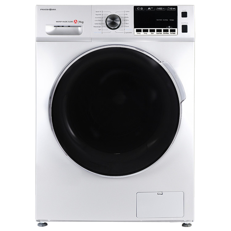 ماشين لباسشويی پاکشوما 9 کيلويی مدل BWF40901 از لباسشویی های سری k تولید شده توسط برند پاکشوما است که از موتور اینورتر BLDC با قدرت چرخش شستشو و 16 برنامه اصلی + 3 برنامه کمکی، مجهز به ورودی مستقل آب سرد و گرم جهت صرفه جویی در مصرف انرژی، دارای طلق محافظ روی درب جهت ایمنی و جلوگیری از اتلاف انرژی، قابلیت تاخیر در زمان شروع شستشو1 تا 24ساعت DELAY، قابلیت آبکشی اضافه البسه EXTRA RINSE، دارای دیگ الماسه، قابلیت تنظیم دمای آب (20درجه تا 90 درجه سانتیگراد) TEMP، قابلیت تنظیم سرعت دور خشک کن (600 تا 1400دور بر دقیقه) SPIN، قابلیت اضافه یا کم کردن البسه بعد از آغاز شستشوADD GARMENT(RELOAD)، برنامه شستشوی اقتصادی البسه نخی و کتان (مقرون به صرفه)COTTON ECO، برنامه شستشوی ملحفه و روتختیDUVET، برنامه شستشوی البسه حجیم و ضخیمBULKY، برنامه شستشوی البسه رنگیCOLOR WEAR، برنامه شستشوی خودکار دیگDRUM CLEAN، برنامه شستشوی البسه کودکانBaby care، برنامه شستشوی البسه ورزشیSport Wear، دیگ الماسه حباب ساز Water Magic Cube