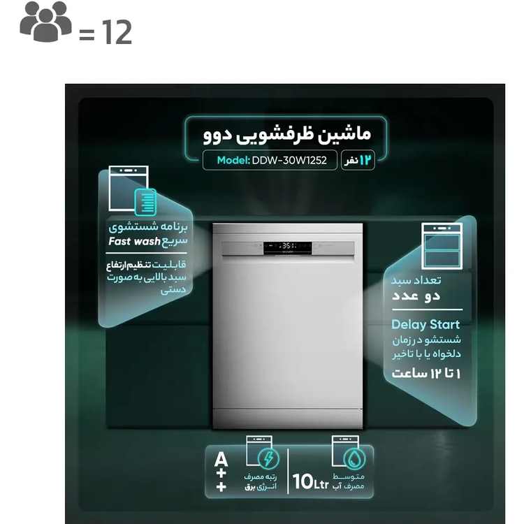 ماشین ظرفشویی دوو سری گلوسی مدل DDW-30W1252 رنگ سفید